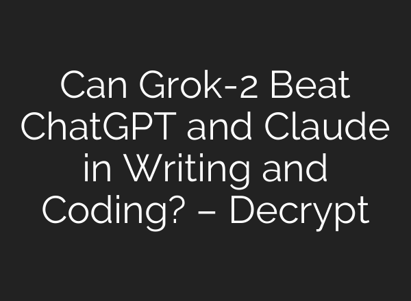 16Aug By The AI ReportNo Comments ChatGPT, News Feed Can Grok-2 Beat ChatGPT and Claude in Writing and Coding? – Decrypt It was largely a head-to-head between Grok and Claude, which topped ChatGPT in our prior tests. While it didn't beat its rivals in every task ...