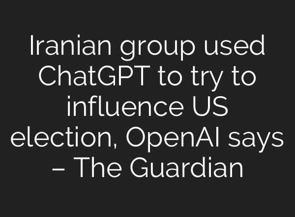 16Aug By The AI ReportNo Comments ChatGPT, News Feed Iranian group used ChatGPT to try to influence US election, OpenAI says – The Guardian The Democratic candidate, Kamala Harris, and her Republican rival, Donald Trump, are locked in a tight race, ahead of the presidential election on 5 ...