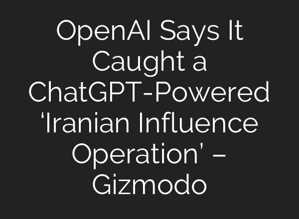 17Aug By The AI ReportNo Comments ChatGPT, News Feed OpenAI Says It Caught a ChatGPT-Powered ‘Iranian Influence Operation’ – Gizmodo An attempt to influence the U.S. presidential election harnessed ChatGPT to generate stories and social media comments, per OpenAI.
